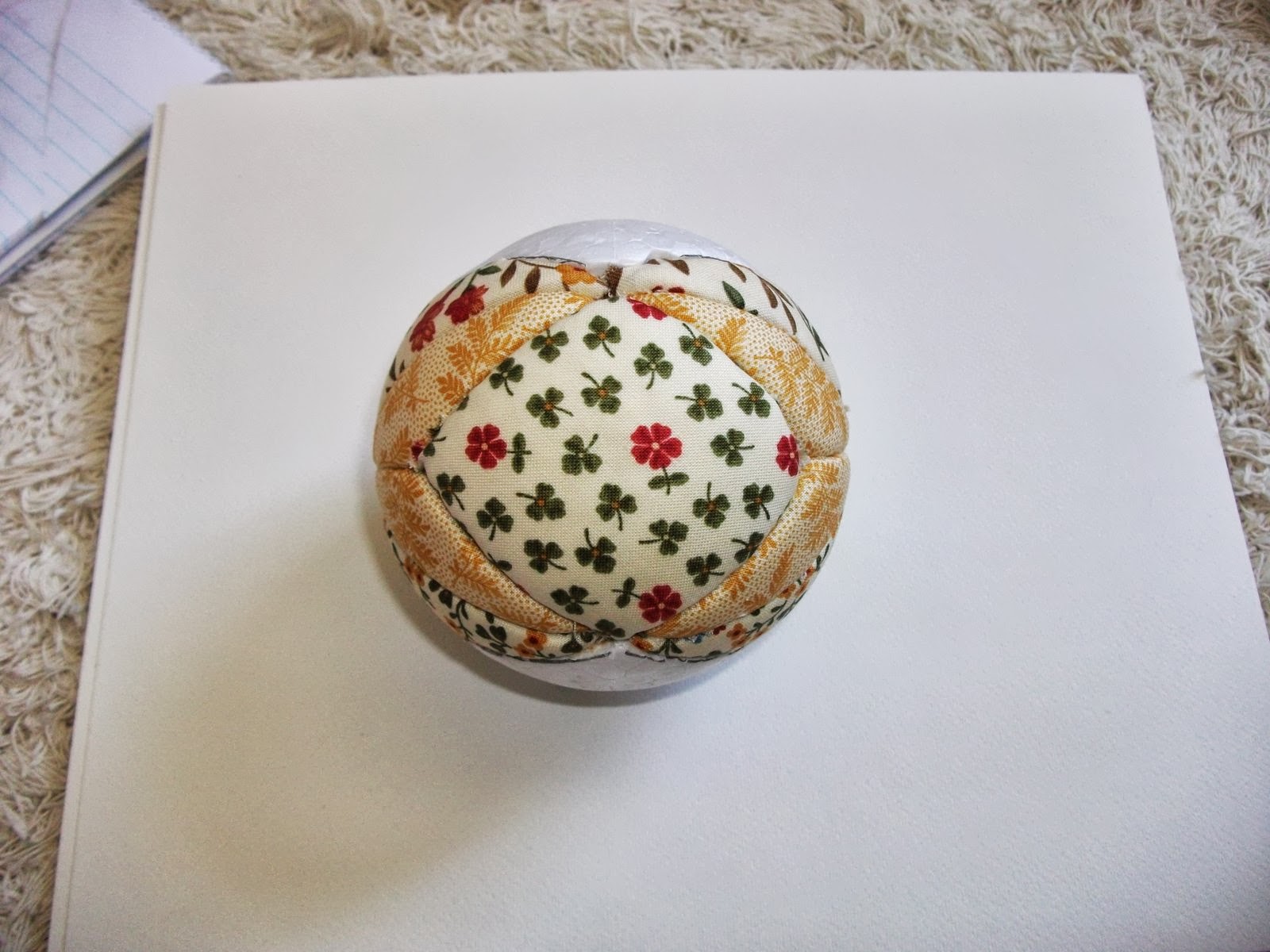 When you have finished wrap thin ribbon or cord around the ball covering all the lines. Good luck I hope this helps. If you have any questions leave a comment and I will get back to you.